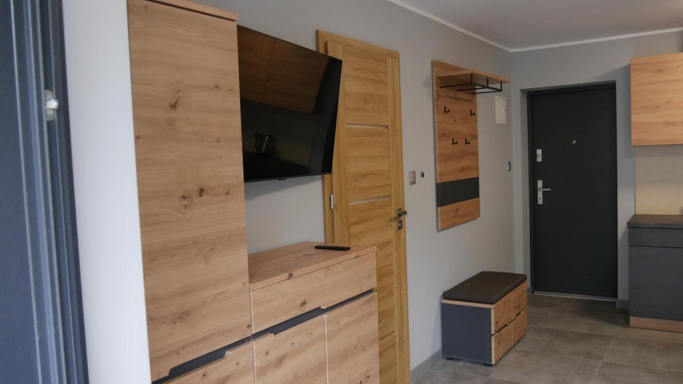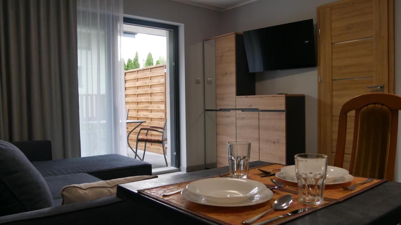 Apartament (6 osób dorosłych). Boasting a private entrance, this apartment includes 1 living room, 1 separate bedroom and 1 bathroom with a walk-in shower and a hairdryer. Guests will find a stovetop, a refrigerator, kitchenware and a microwave in the fully equipped kitchenette. The apartment also features a barbecue. Featuring a terrace with garden views, this apartment also offers soundproof walls and a flat-screen TV. The unit has 3 beds. Apartament - 6 osobowy. Powierzchnia pokoju ok.: 45 mkw. ;