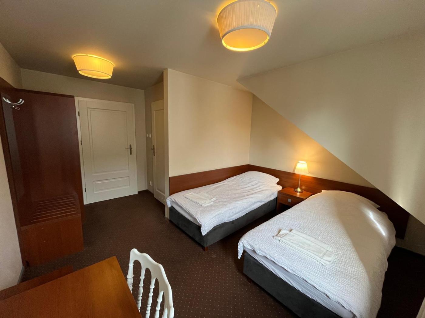 Mały pokój z 2 łóżkami pojedynczymi. The twin room provides a wardrobe and a carpeted floor, as well as a private bathroom featuring a shower. This twin room offers a flat-screen TV. The unit offers 2 beds. Pokój z 2 łóżkami pojedynczymi - 2 osobowy. Powierzchnia pokoju ok.: 10 mkw.